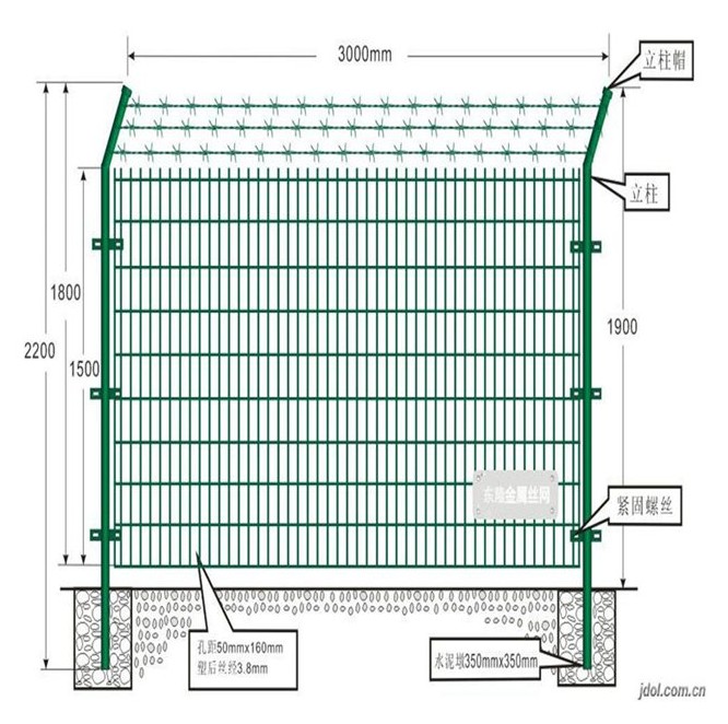 結(jié)構(gòu):用高強(qiáng)度冷拔絲與低碳鋼絲焊接后經(jīng)過液壓成型,用鏈接附件與鋼管支柱固定。